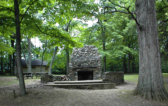 The area is now a park that was established in 1923 to preserve and commemorate the old fort. Since 1987, the grounds have been used during winter as a Santa Land, where visitors drive through to view Christmas lights and decorations. Fort St. Clair is also home to the Whispering Oak Tree, which is over 200 years old. According to legend, you can hear the tree whisper under the right conditions. Only a few remnants of the original fort remain. Most of the structures pictured here were built when the site became a park. Note that the OES is not affiliated with the park. Please visit the City of Eaton’s website for the park schedule.