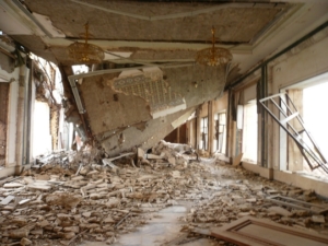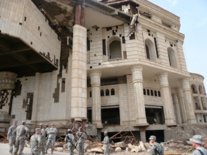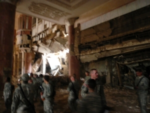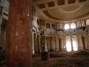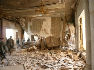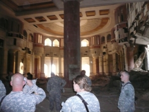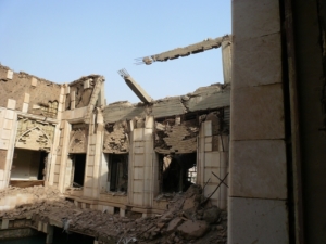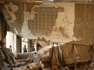 This page steps away from our traditional postings about abandoned and historical places around Ohio and takes us to a war zone. One of our members was stationed in Iraq for some time and was authorized to take a few tours of abandoned places, some of them were just shells after having been bombed. Below you will see the photos he took while on tour. You will see bombed and gutted palaces, the beautiful Al Faw Palace and some cityscape photos taken around town.