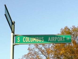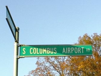 This road sign marked where the South Columbus Airport once stood. Part of the runway is now being used as a tractor trailer lot while another section has been developed into a neighborhood.