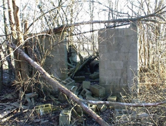 This cinderblock structure was located near where the new Hamilton Township elementary school as built.