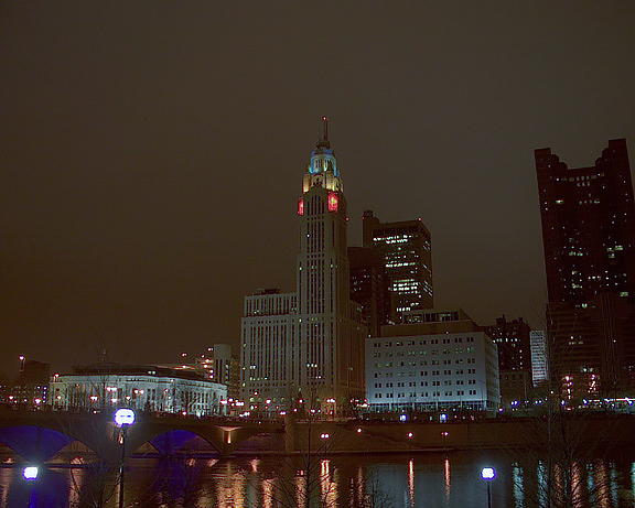 In 2001, the OES purchased a new Hewlett-Packard PhotoSmart 912 digital camera to take better photos for the website. We decided to take some night time photographs in and around downtown Columbus to test out some of the camera’s new features. Some turned out pretty good, so we put them on this page. We may add more photos in the figure as we test features of our newer digital cameras, like the Canon Digital Rebel models. If you would like to be informed about updates to the website, follow us on Facebook, Twitter or Google+.