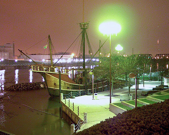 A replica of the Santa Maria called the Scioto River home from 1991 until it was removed in 2014 pending restoration. Currently in storage at a city facility in south Columbus, its future is uncertain.
