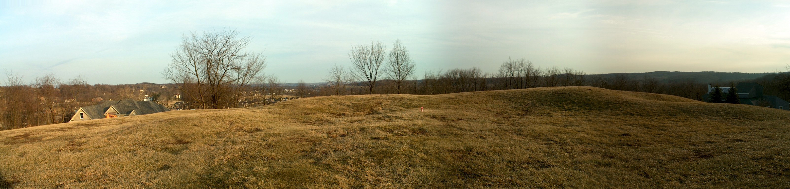 The OES visited Alligator Mound on June 11, 2001. Alligator Mound was built around 2,000 years ago on top of a hill that is now part of the Bryn Du Woods housing development in Granville. It is one of only two effigy mounds in Ohio, the other being the Great Serpent Mound in Adams County. Archaeologists for many years believed Alligator Mound was built by the Hopewell culture, however, carbon dating in the late 1990s revealed that the Fort Ancient culture was most likely the constructors of the mound. Researchers believe the mound’s shape actually represents an opossum, racoon or panther rather than an alligator since alligators are not native to Ohio. Of those options, the mound most likely represents the Underwater Panther, one of the most powerful supernatural spirits of the Native Americans. Early settlers may have misunderstood the translation of this creature, deemed it an alligator and the name stuck. Alligator Mound was nearly lost to a quarrying operation in the 1840s. The owner of the quarry agreed to halt operations, but the land was then turned into a pasture and remained so for many years. It wasn’t until the 1970s-80s that interest in preserving the effigy mound came about. Alligator Mound was placed on the National Register of Historic Places in 1971 and is now preserved as a small park.