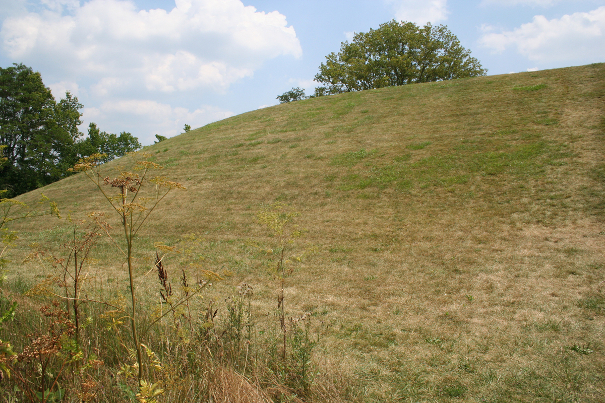 The OES visited the Seip Earthworks on July 10, 2006. Built by the Hopewell culture sometime between 100 BC to 500 AD, the Seip Earthworks once enclosed about 121 acres, forming a small circle, an irregular circle and a square with 10,000 feet of embankment walls that were up to ten feet high. Inside this enclosure were several structures, a large mound at the center of the irregular circle, three smaller conjoined mounds, and some smaller mounds. Most of the earthworks were degraded or destroyed by agriculture and erosion, but several have been preserved and restored. In all, only ten percent of the earthworks are preserved in this roadside park. Seip Mound is the most recognizable feature of the earthworks today. At 240 feet long, 130 feet wide, and 30 feet high, Seip Mound is one of the largest burial mounds in the Middle Ohio River Valley. It contained over 100 burials and numerous artifacts, earning Seip Mound a place on the National Register of Historic Places.
