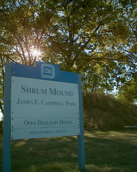 Shrum Mound is part of Campbell Park on McKinley Avenue, one mile south of Trabue Road in Columbus; Franklin County.