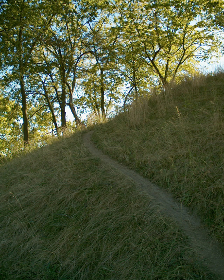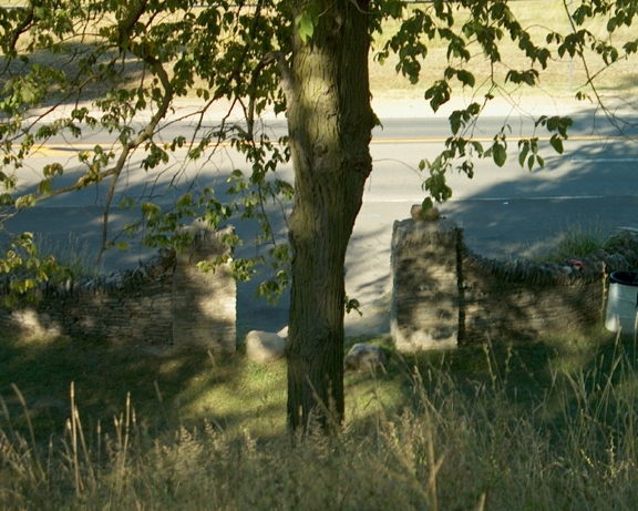 The OES visited Shrum Mound on September 4, 2002. Located in Campbell Park on the west side of Columbus along McKinley Avenue, Shrum Mound is one of the last remaining conical mounds in Columbus. Believed to have been built around 2,000 years ago by the Adena culture, Shrum Mound stands 20 feet tall with a diameter of 100 feet. The mound was covered with grass and had trees growing from its side. A dirt path led to the top of the mound where you could stand and enjoy the view. An old limestone quarry surrounds the park except for where it connects to the road. Shrum Mound closely resembles the Conus Mound in Marietta, also built by the Adena. Mounds of this type were very common across the entire region only to have fallen to agriculture and development. It was quite surprising to us that Shrum Mound did not fall into the grasp of the quarry and disappear forever like so many other sacred Native American sites.