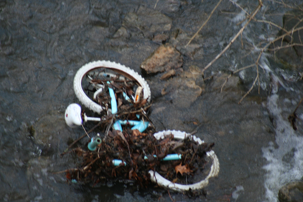 Some poor kid had lost their bicycle to the stream.