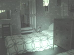 This infrared photo taken by COPS shows a possible apparition standing in the doorway at Malabar Farm. It has not been modified in any way except for resizing.