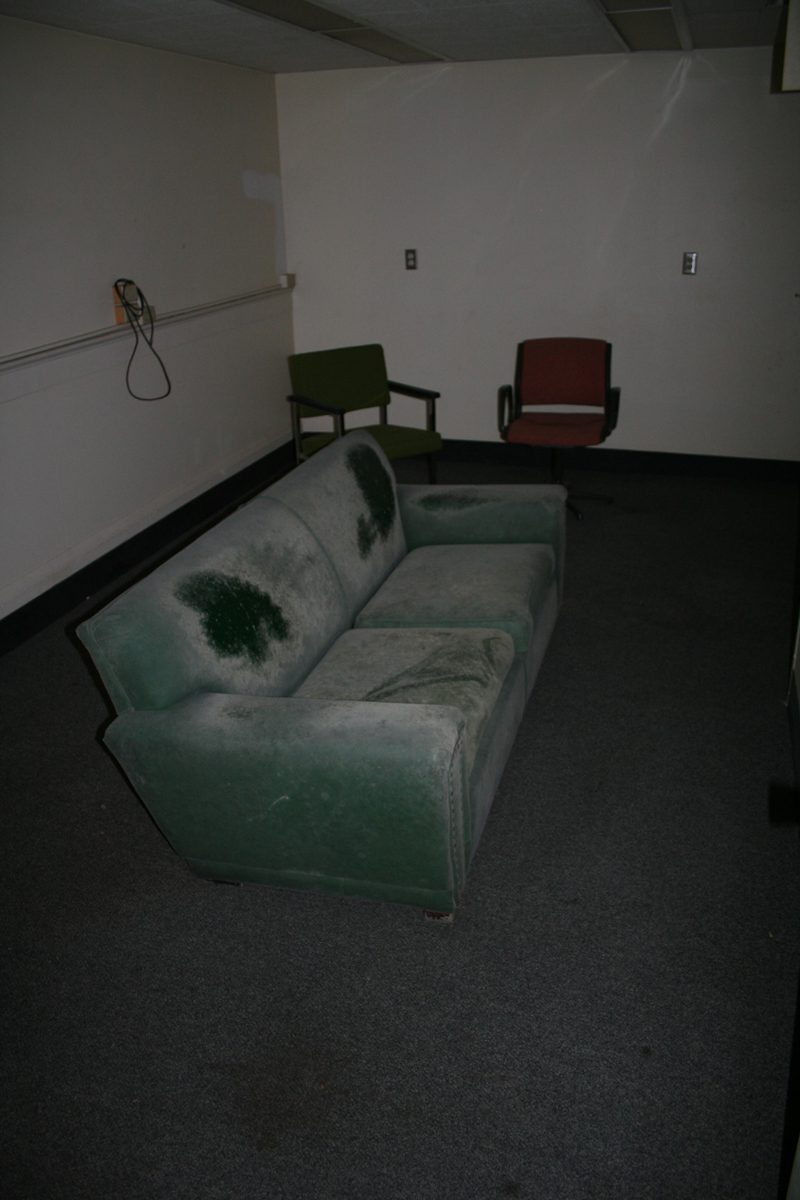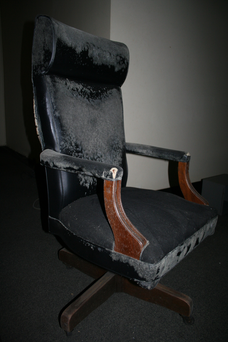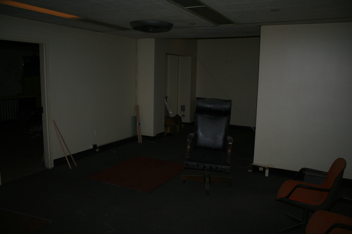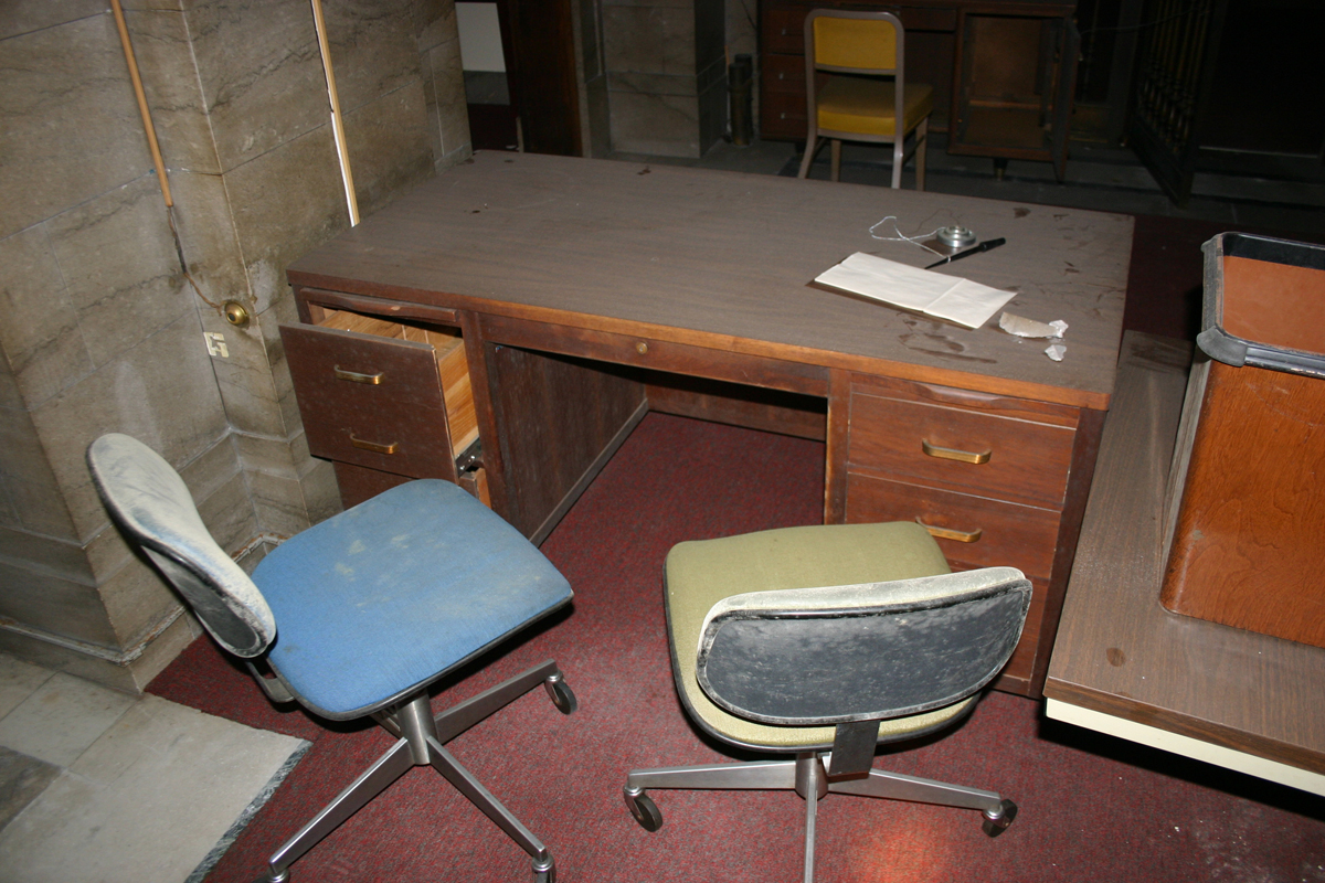 This area may have been used by the maintenance supervisor. Note the old leather chair at the center and roll top desk in the corner.
