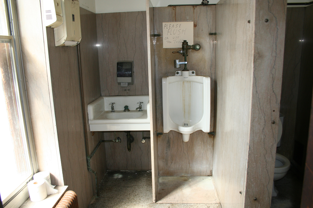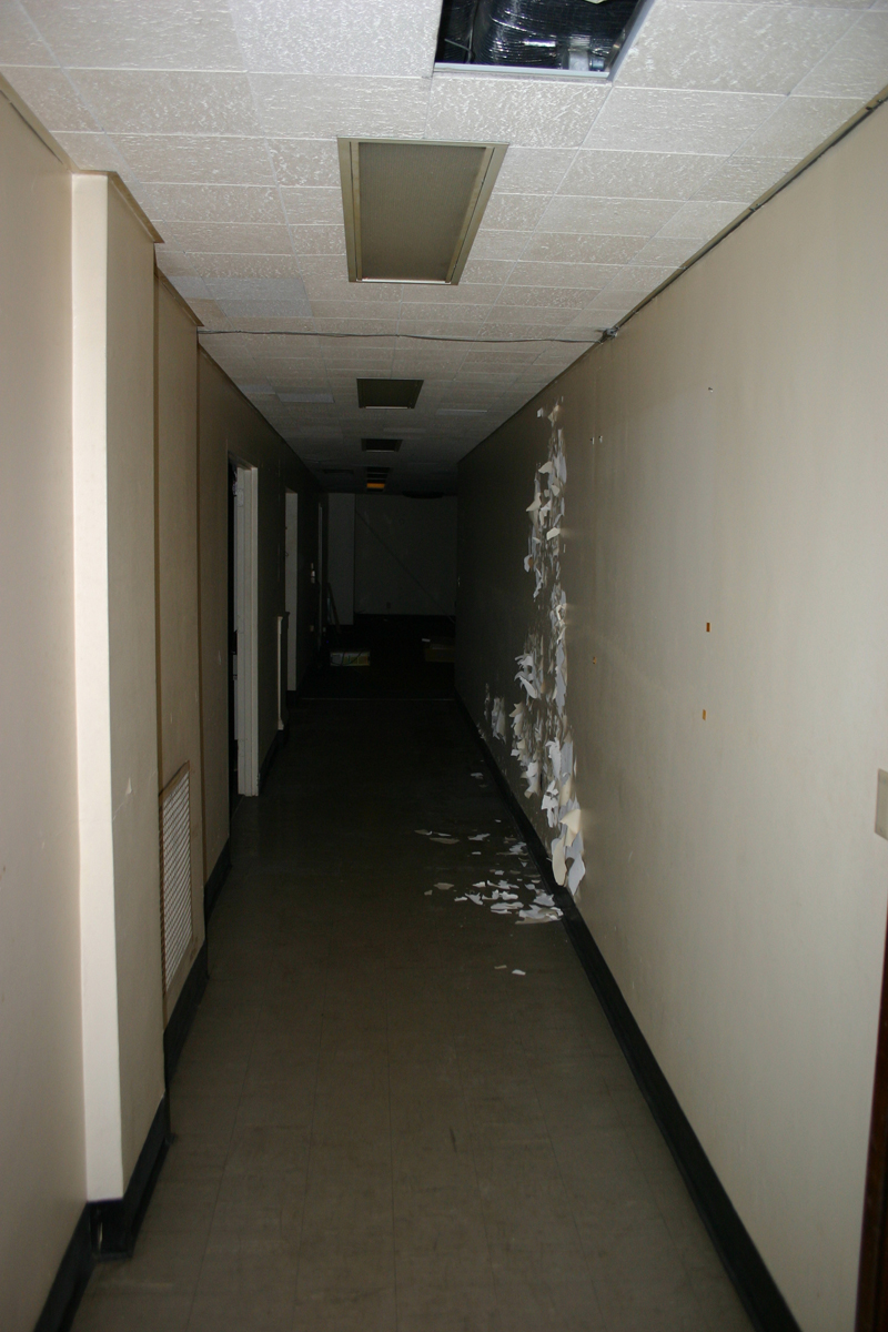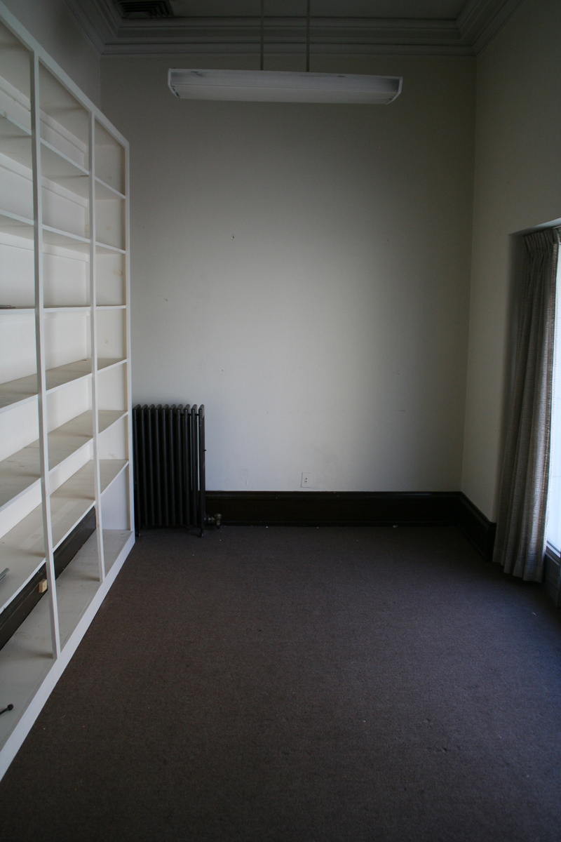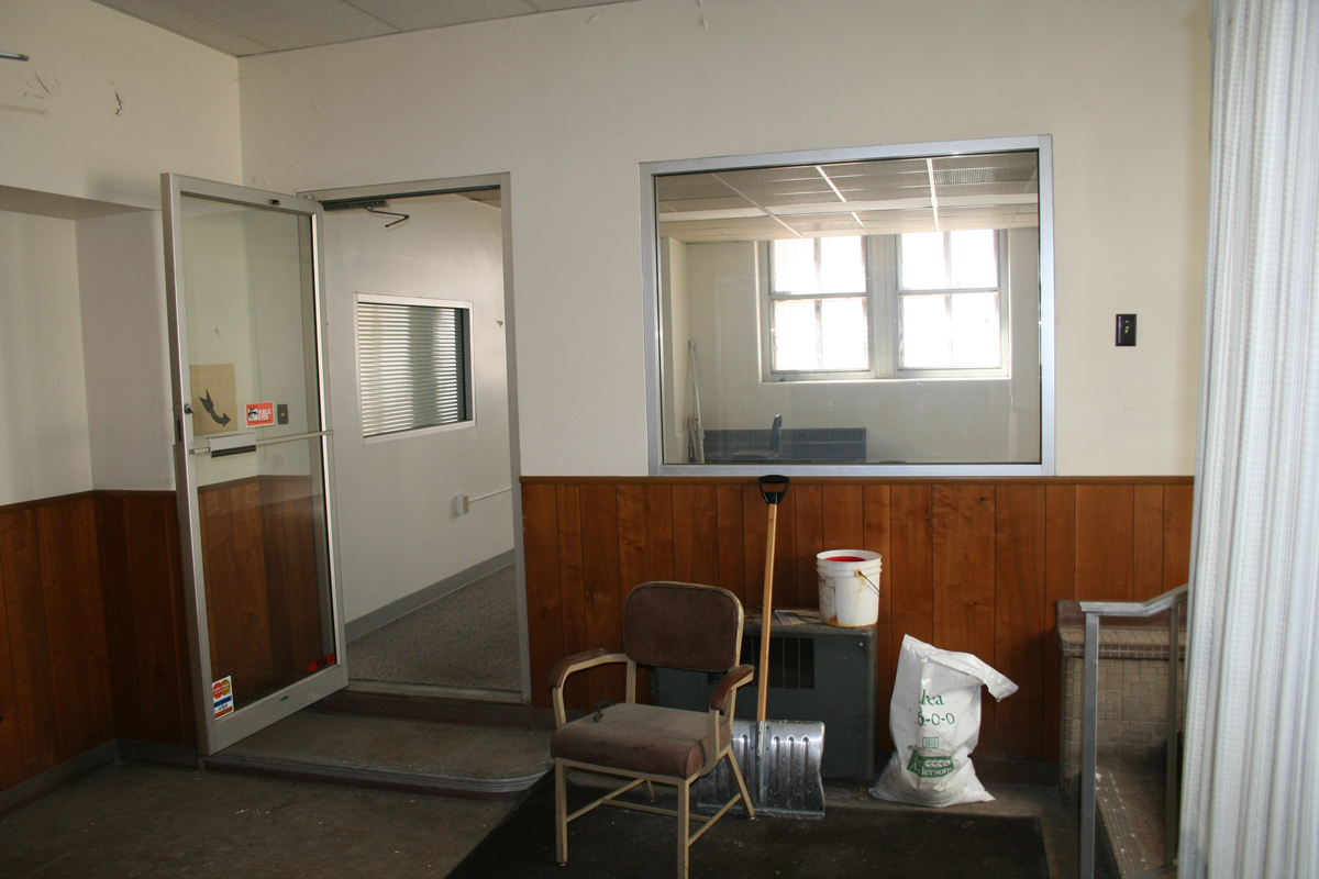 This area may have been used by the maintenance supervisor. Note the old leather chair at the center and roll top desk in the corner.