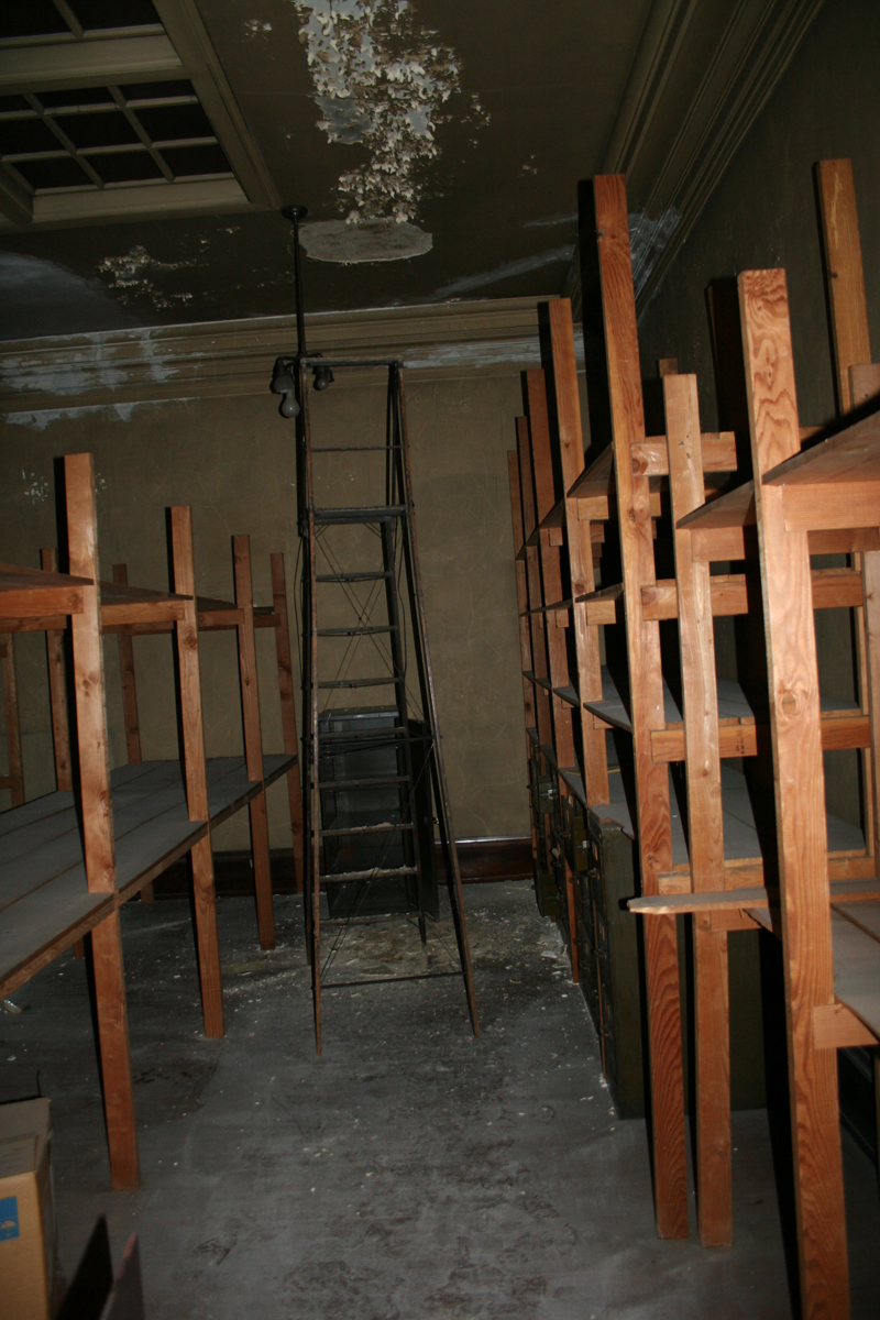 There was a ladder, Christmas decorations, and a few filing cabinets full of old records in the store room.