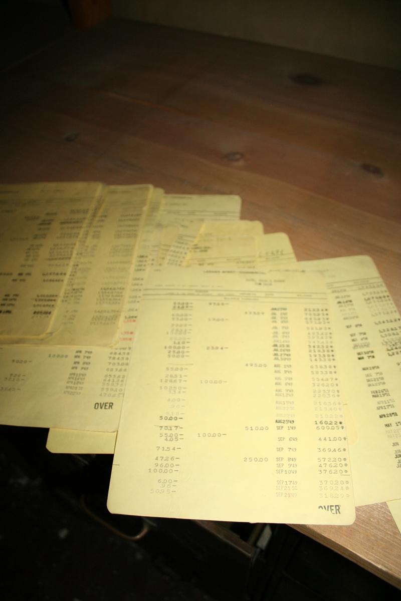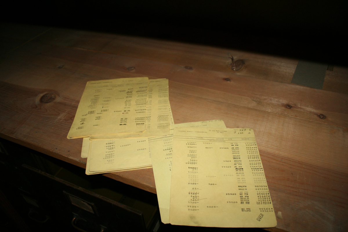 Some of the old records that were on the counter. The ledger in the foreground was a commercial account for Lt. Col. Paul A. Hurst dated from the 1950s.