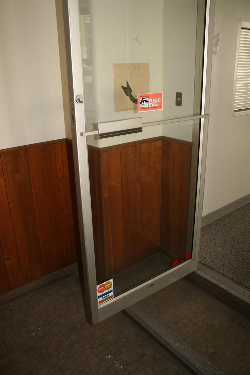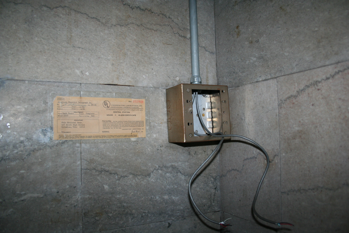 The certificate next to this box was the alarm certificate for the bank vault; valid from July 1, 1979 to July 1, 1984.