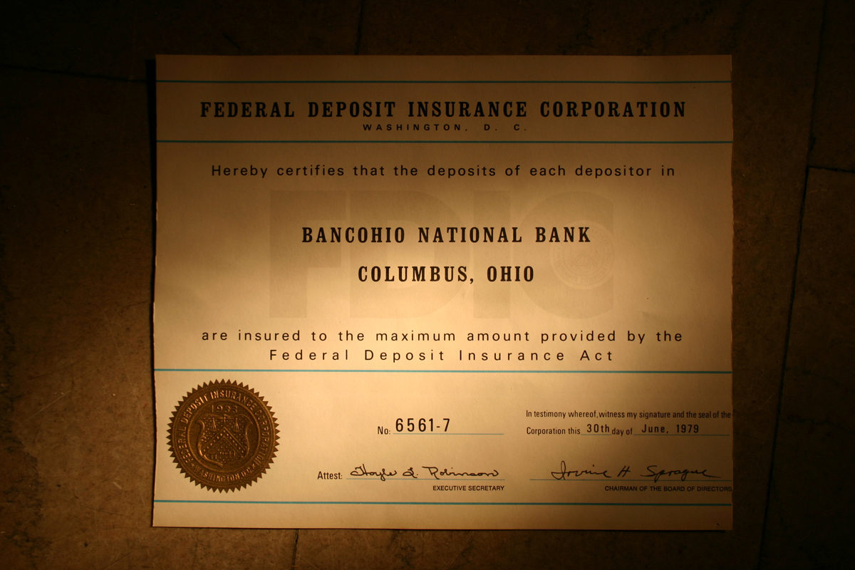 We found this certificate from the FDIC showing the bank was insured on June 30, 1979.