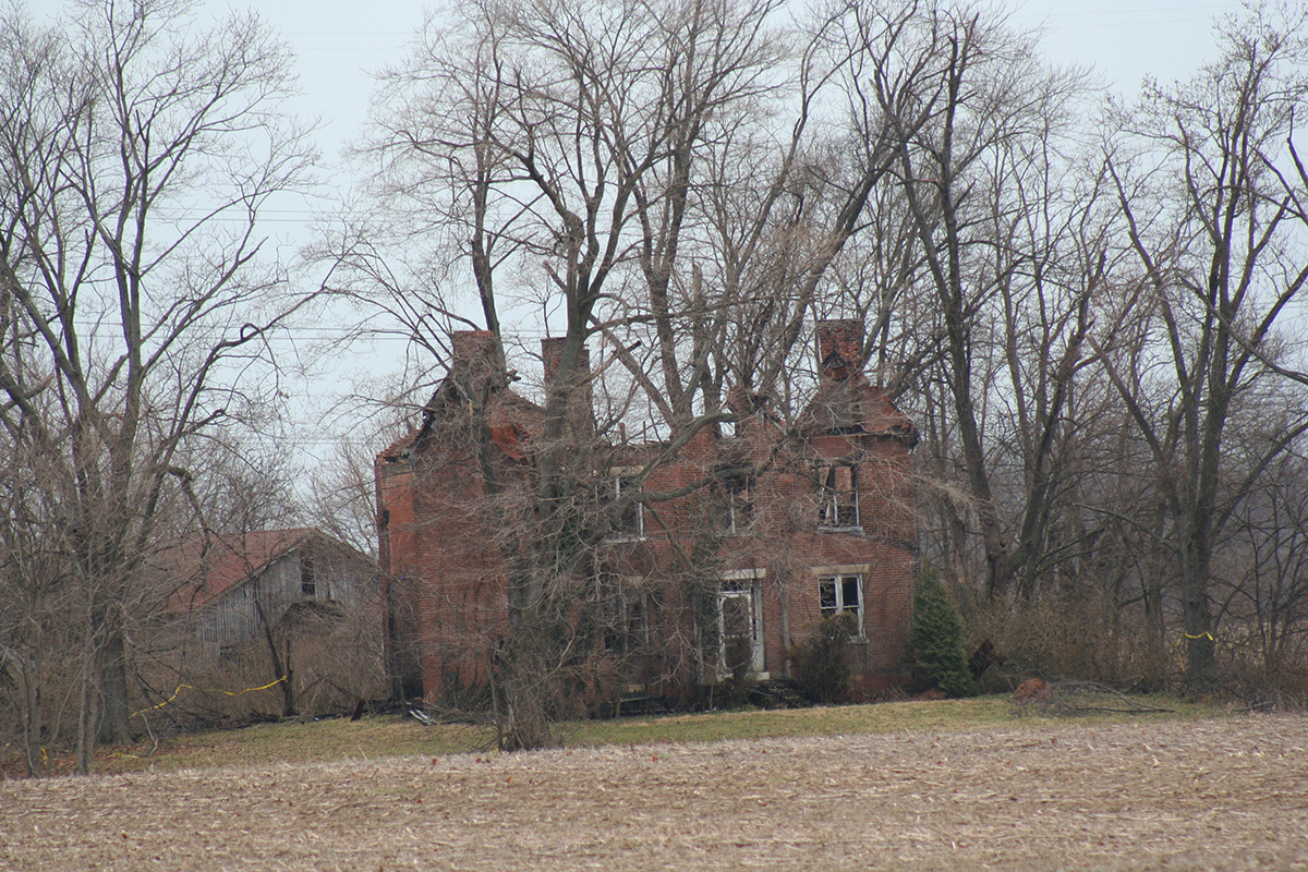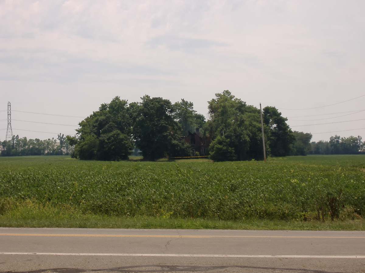 The OES visited the Rohr Road Brice House on March 16, 2002. We decided to check out the house after noticing a for-sale sign for the home and surrounding property. The area was experiencing a large growth in industrial development, and we were concerned the home would be lost to the bulldozer like so many others. From the appearance of the house, it may have dated to the mid- to late 1800s. The nearby greenhouse owned the property, and we were asked to leave shortly after our arrival. The workers did not understand what we wished to do—take photos to preserve the memory of the house before it was lost for good. We were able to take some external photos of the home. From the outside, the house seemed to be in good shape, but we were told by the workers that the inside had been vandalized.