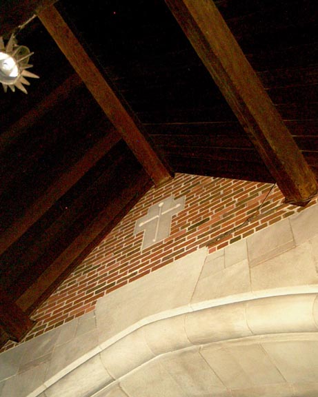 An embedded cross above an entryway.