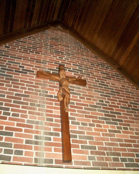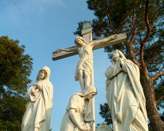 A closer look at the statue of Jesus on the cross.