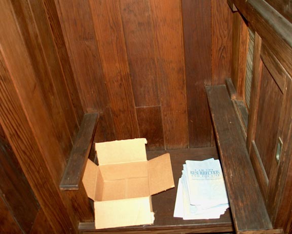 The confessional was being used for storage at the time of our visit.