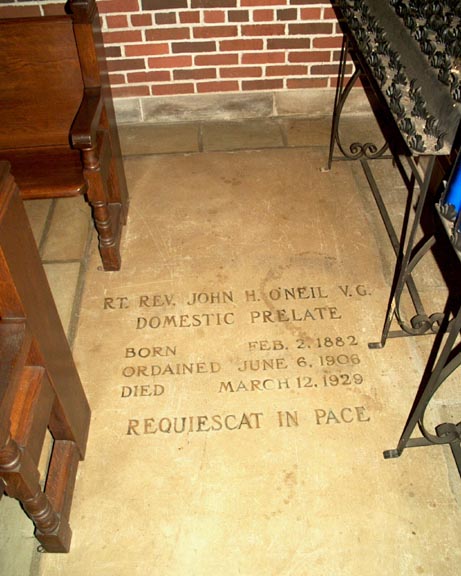 The tomb of Rev. John O'Neil, who died on March 12, 1929.