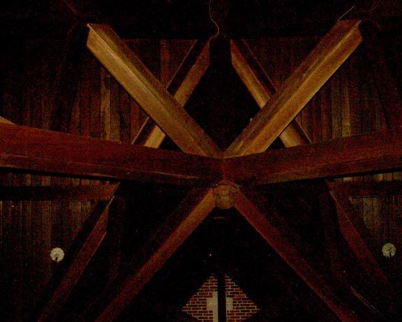 These wood beams came together to support the roof above the stage.